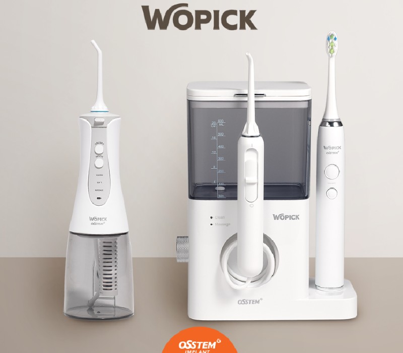 The Osstem Wopic Handy Oral Irrigator is the perfect compact and lightweight device for on-the-go use. It has an intuitive LCD digital display and 10-level pressure adjustment, and each set includes one oral irrigator, two jet tips, a USB charging cable, a convenient pouch, and an owner's manual, making it the ultimate travel companion for effective oral care.